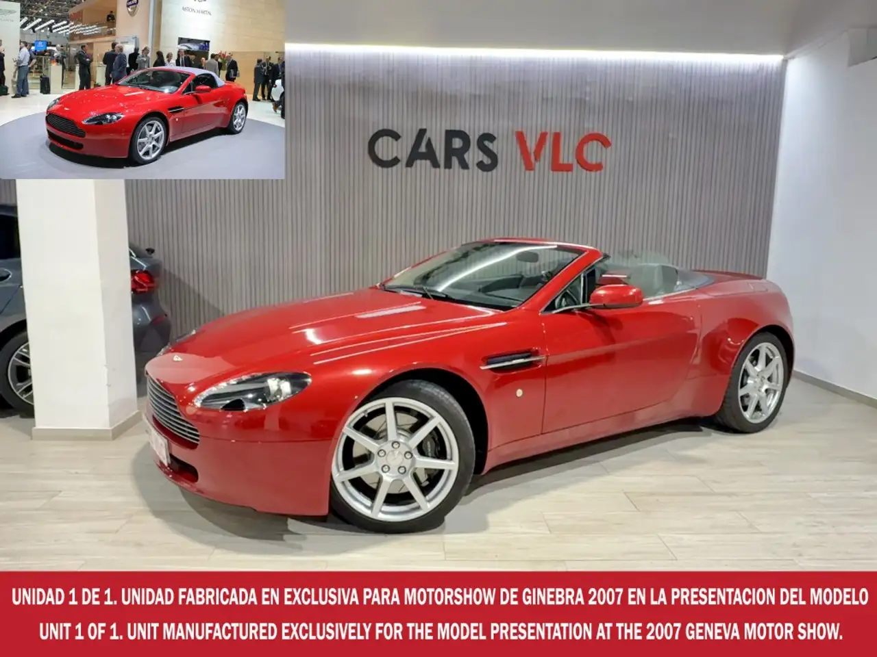 Os presentamos este Aston Martin V8 Vantage Roadster, unidad con muy poco Kilometraje, con la particularidad, de ser una unidad fabricada en exclusiva para el SALON DE GINEBRA DE 2007 (Foto de placa justificativa incluida en las fotografías). Libro de revisiones ASTON MARTIN AL DIA, usado muy poco y respetando los intervalos de servicio en Aston Martin.