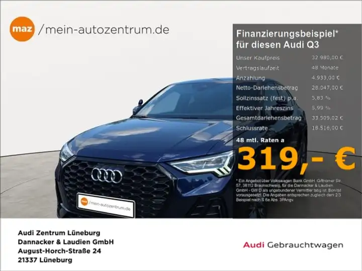 - Audi Q3 Sportback 35 1.5 TFSI S line Alu LED AHK Stan