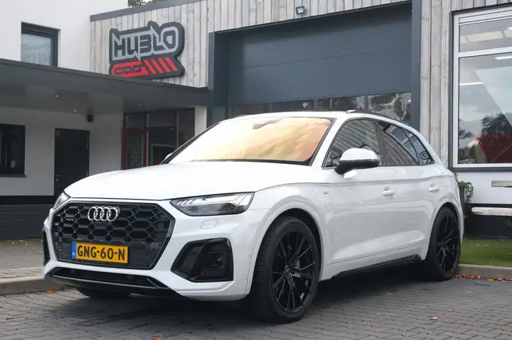 Ontdek de vele kwaliteiten van de Audi Q5. Met zijn tijdloze design, zijn krachtige motor en zijn vele veiligheidssystemen laat deze auto u versteld staan. Met de S-Line styling laat dit model zich van zijn meest dynamische kant zien. Goed voor het milieu, goed voor de portemonnee: hybride rijden biedt het beste van beide! Boven uw hoofd schuiven de wolken zichtbaar voorbij door het elektrisch bediende glazen panorama dak. En kijk eens aan de achterzijde wat gemakkelijk: een eveneens elektrisch bedienbare achterklep! Winterse omstandigheden? Geniet dan van het comfort van de stoelverwarming! Daglicht bij nacht? De koplampen met matrix LED-verlichting zorgen ervoor. De uitmonstering van deze auto wordt gecompleteerd door onder meer 21 inch lichtmetalen velgen, halflederen bekleding, warmtewerend glas, aluminium dakrailing, in delen neerklapbare achterbank en LED-achterlichten.