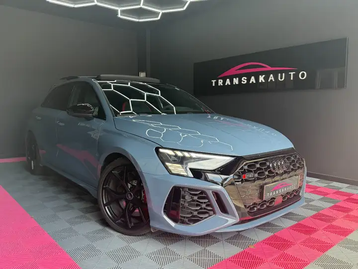 Leader dans le courtage automobile, nous sommes présent en France avec plus de 200 agences & showrooms. TRANSAKAUTO MARIGNANE VOUS PROPOSE À LA VENTE CETTE AUDI RS3 Sportback 2.5 TFSI 400 S tronic 7 Quattro - 4 PNEUS NEUF GARANTIE 3 MOIS INCLUSE. Garantie constructeur de 6 mois à 3 ans disponible. Livrable sur le territoire Français & Corse & DOM TOM . PRESTATIONS & SERVICES : - Achat - Vente - Reprise - Carte grise - Financement - Garantie mécanique - Sécurisation du paiement - Conseil en transaction automobile - Nettoyage professionnel avant livraison Le kilométrage peut être évolutif. PRIX HORS FRAIS DE MISE À LA ROUTE.DES ERREURS PEUVENT SE GLISSER DANS NOS ANNONCES, CONTACTEZ-NOUS POUR PLUS D'INFORMATIONS SUR LES CARACTÉRISTIQUES DU VÉHICULE. Tous les véhicules ne sont pas dans le showroom, je vous recommande de prendre rendez-vous avant de vous déplacer. Pour toutes questions ou reportages photos supplémentaires, veuillez nous contacter. PASSION - RIGUEUR - PARTAGE - INNOVATIONTRANSAKAUTO MARIGNANE 63 AVENUE DU MARÉCHAL JUIN, 13700 MARIGNANEBONNE ROUTEAccoudoir arrière, Accoudoir avant, Affichage tête haute, Alerte de franchissement involontaire de lignes, Allumage automatique des phares, Caméra de recul, Carte mains-libres, Climatisation automatique, Contrôle pression pneus (RDC), Démarrage sans clé, Détecteur pluie, Ecrous de roue antivol, Entrée sans clé, Feux arrière LED, Feux avant LED, Feux de position à LED, Feux indicateurs de changement de direction, Fixation pour siège enfant, Hayon électrique, Installation d'alarme, Installation téléphone mains libres, Interface Bluetooth, Jantes/roues en alliage léger 19", Kit de réparation pneus (Mobile Tyre), Ouverture de hayon à distance, Peinture métallisée, Régulateur de distance, Rétroviseur intérieur électrochrome, Rétroviseurs extérieurs dégivrants, Rétroviseurs extérieurs rabattable électriquement, Rétroviseurs extérieurs électriques, Siège conducteur chauffant, Siège conducteur réglable en hauteur, Siège conducteur à dossier réglable, Siège passager chauffant, Siège passager réglable en hauteur, Siège passager à dossier réglable, Sièges avant Sport, Sièges en cuir, Sièges à mémoire, Soundsystem, Système de freinage d'urgence anticipatif, Système de navigation, Système de stationnement automatique, Téléassistance, USB jack, Verrouillage centralisé télécommandé, Verrouillage indépendant du coffre/hayon, Vitres arrière surteintées, Volant avec palettes de changement de vitesses, Volant sport