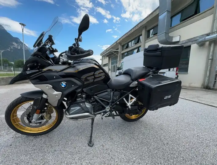 R 1250 GS ANNO 06/2020 48000 KM MODELLO EXCLUSIVE NERO/ORO PACCHETTI COMFORT - TOURING - DINAMIC - SELLA COMFORT ANTIFURTO CHIAMATA EMERGENZA CERCHI ORO A RAGGI ESTENSIONE CAVALLETTO TRIS VALIGIE VARIO (ESTENDIBILI) BORSE INTERNE + BORSE SUPPLEMENTARI CONNECTID RIDE CRADLE SCARICO TITANIO AKRAPOVIC BATTERIA NUOVA E FRENI NUOVI