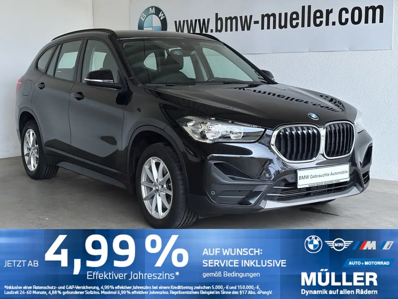 Weitere Informationen: Schlussrate 17.916 EUR, Laufzeit 48 Monate, Sollzins p.a. 4,88%, Sollzinsart gebunden, Nettodarlehensbetrag 25.346,95 EUR, Ratenabsicherung 1.256,95 EUR, Bearbeitungsgebühren 0,00 EUR, Anbieter BMW Bank GmbH, Heidemannstr. 164, 80939 München