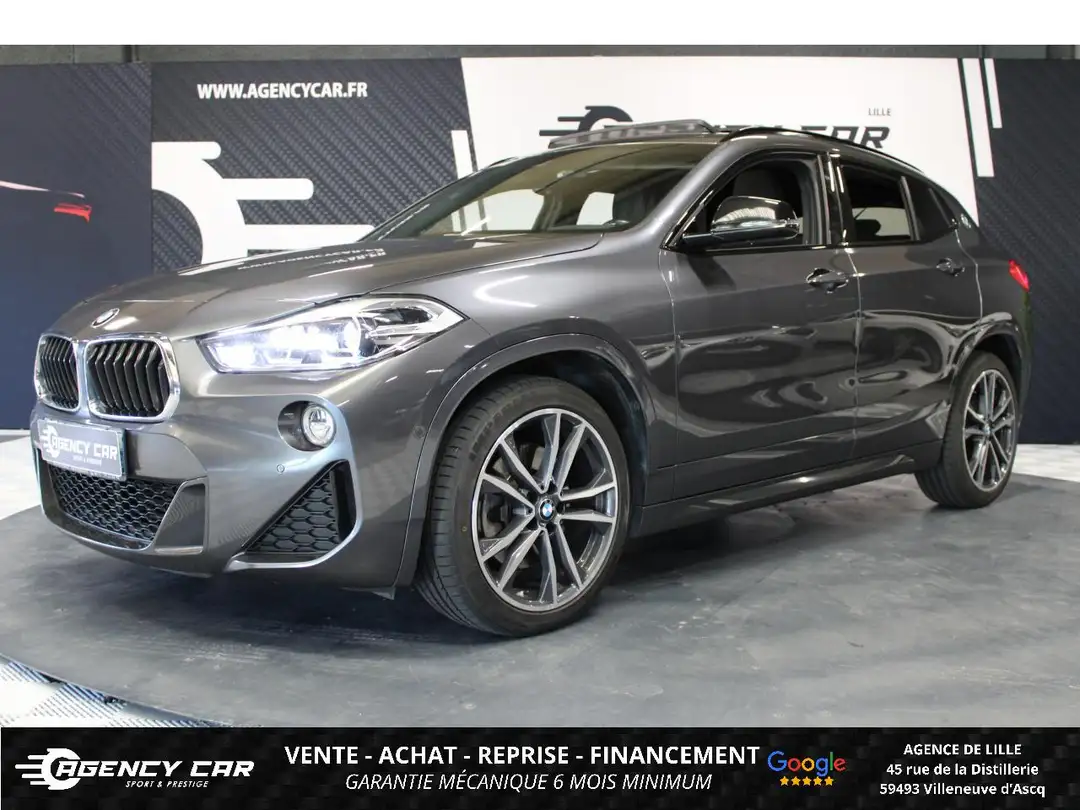 AGENCY CAR Showroom automobile à LilleDepuis 2014, AGENCY CAR vous accompagne dans vos projets d'achat de véhicules d'occasion avec sérieux et transparence.Notre agence de Lille vous propose ce véhicule :BMW X2, Gris foncé, 10 cv, 5 portes, première mise en circulation le 06-12-2018, garantie 6 mois.Véhicule visible UNIQUEMENT SUR RENDEZ-VOUS à l'agence de Lille (59).Horaires d'ouverture :                                                                             Lundi : 13h - 17hMardi au Vendredi : 10h - 18h30Samedi : 9h00 - 12h30Financement possible de 12 à 72 moisGarantie jusqu'à 48 mois en optionLivraison dans toute la France (sur devis)Des erreurs peuvent se glisser dans nos annonces. Merci de nous contacter pour toute confirmation d'équipements ou d'informations.Vidéo 360° du véhicule disponible sur notre site internet.Les options : Becquet arrière M, Crochet d'attelage avec rotule amovible, Pack Innovation, Rails de toit Shadow Line brillant, Système Hi-Fi, Toit ouvrant panoramique en verre, Tuner DAB, Volant chauffant, 5 sièges, Z- Frais de dossier 690€, Accoudoir central avant, Antenne de toit « aileron de requin », Appuis-tête avant et arrière, Autoradio BMW Professional, 8 touches de favoris programmables, 'Controller' iDrive avec touches de raccourci, 6 haut-parleurs, Ecran 6,5', Bluetooth avec streaming, Baguettes de seuils de portes avant avec l'inscription 'BMW', Banquette arrière rabattable 40/20/40, Boîte de vitesses automatique Sport avec palettes au volant, Bouton de démarrage Start/Stop sans manipulation de la clé, Climatisation automatique bi-zone, Commande électrique du hayon, Détecteur de pluie et allumage automatique des projecteurs, Déverrouillage électrique du hayon via la poignée ou la clé radiocommandée, Feux arrière 3D à LED, Feux de jour à LED, Feux de stop dynamiques clignotants avec technologie LED, Fixations Isofix aux places latérales arrière, Frein de parking électromécanique, Indicateur de limitation de vitesse, Kit rangement, Lève-vitres électriques avant et arrière, avec commande à impulsion, Ligne M Sport, Limiteur et régulateur de vitesse avec maintien de la vitesse en descente, Logo BMW sur le capot moteur, le hayon et les montants de custode (gauche et droite), Notice d'utilisation de la voiture intégrée et carnet d'entretien électronique avec BMW Service History, Pack SimpliCity, Prise 12V, Rappels de clignotants intégrés aux rétroviseurs extérieurs, Rétroviseur intérieur électrochrome, Sécurité enfants sur les vitres AR, Sélecteur de mode de conduite - 3 modes : 'ECO PRO', 'Confort' et 'Sport', Siège passager avant réglable en hauteur, Sortie d'échappement double (gauche et droite), chromée, 2 x 90 mm, Touches multifonctions sur le volant, Volant réglable en hauteur et en profondeur