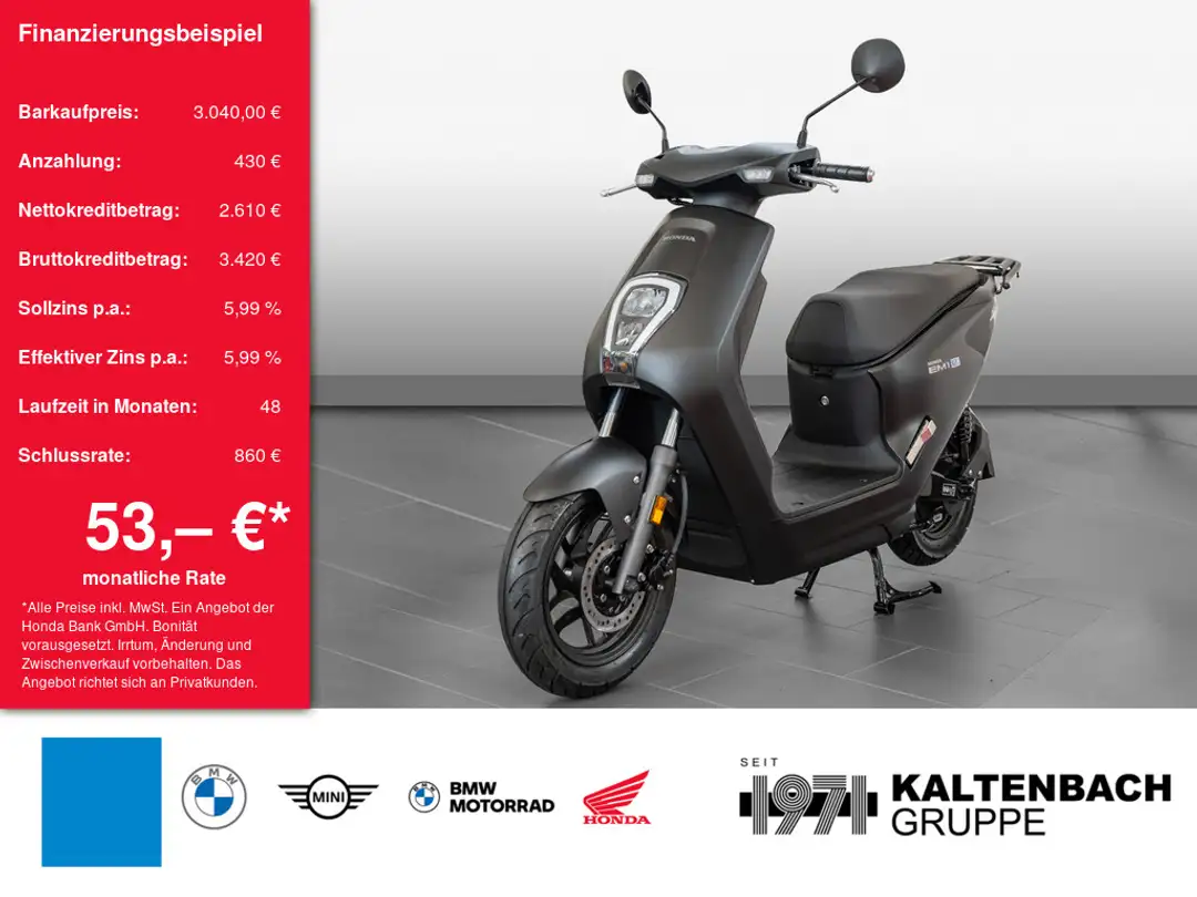 *Ein Finanzierung mit Schlussrate-Finanzierungsbeispiel der Honda Bank GmbH, Hanauer Landstraße 222-226, 60314 Frankfurt am Main für Privatkunden: 53,34 EUR monatl. Rate, 5,99 Prozent eff. Jahreszins bei 48 Monaten Laufzeit, einer Anzahlung von 429,90 EUR, einer jährlichen Laufleistung von 4.000 km und einer Schlussrate von 859,80 EUR. (Sollzins gebunden p.a. 5,99 Prozent, Bruttokreditbetrag: 3.420,21 EUR, Nettokreditbetrag: 2.610,10 EUR)