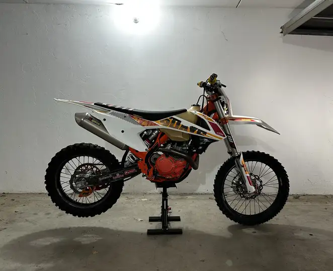 Moto targata, depotenziata a libretto, con rimozione targa veloce, in ottime condizioni con carene originali KTM six days e power parts in ergal, mai usata in pista solo uscite domenicali da amatore.