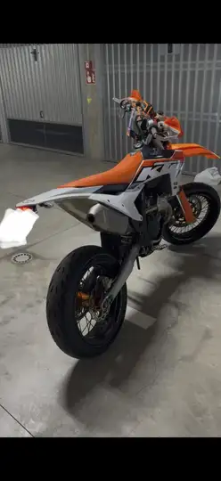 Nato come cross 2023 immatricolato supermotard da VM RACING a Settembre 2025, 100 ore all’attivo, tagliando officina KTM ufficiale, da tagliando ad oggi 207 km, gomme nuove, cerchi nuovi, trasmissione nuova, impianto frenante nuovo, scarico completo Akrapovic, sella nera ribassata Della Valle, tappo in Kevlar, leva frizione in Kevlar.