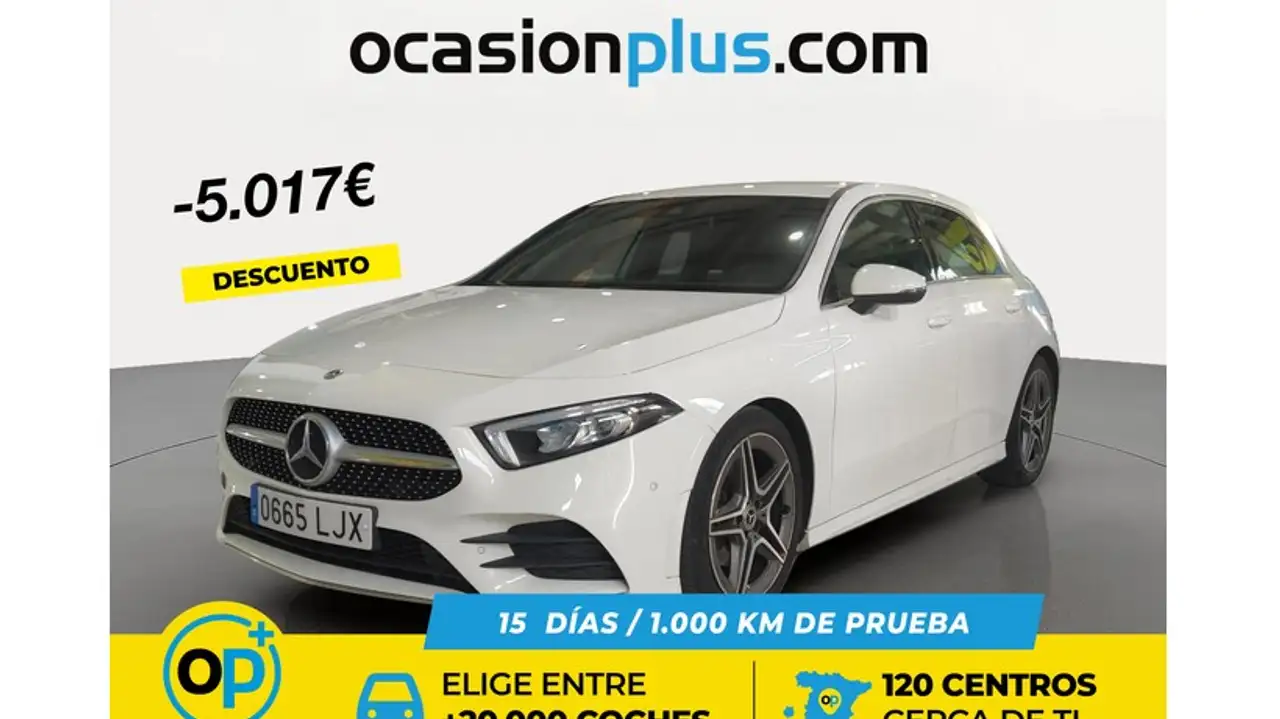 OCASIONPLUS - 20000 COCHES - 120 CENTROS OCASIONPLUS Nº1 CALIDAD - PRECIO Elige el coche que te guste y te lo llevamos a tu ciudad sólo con reservarlo 15 DÍAS / 1000 KMS DE PRUEBA Hasta 5235€ de descuento en este coche Precio oferta financiado: 19955€ (consulta condiciones específicas de promo - sujeta a aprobación de la entidad financiera) Precio al contado: 21950€ ADEMÁS, HACEMOS LAS MEJORES FINANCIACIONES DEL MERCADO, PREGÚNTANOS!!Ref. 0665LJX OCASIONPLUS - 20000 COCHES - 120 CENTROS OCASIONPLUS Nº1 CALIDAD - PRECIO Elige el coche que te guste y te lo llevamos a tu ciudad sólo con reservarlo 15 DÍAS / 1000 KMS DE PRUEBA Hasta 5235€ de descuento en este coche Precio oferta financiado: 19955€ (consulta condiciones específicas de promo - sujeta a aprobación de la entidad financiera) Precio al contado: 21950€ ADEMÁS, HACEMOS LAS MEJORES FINANCIACIONES DEL MERCADO, PREGÚNTANOS!! Equipamiento destacado: Paquete AMG, Tapicería cuero-alcántara, Navegador, Car Play, Cámara de marcha atrás, Ayuda aparcamiento, Faros delanteros led, Faros traseros led, Encendido automático de faros, Sensor de lluvia, Asistente de cambio de carril, Asistente de mantenimiento de carril, Reconocimiento señales de tráfico, Control de velocidad, Limitador de velocidad, Volante multifunción, Aire Acondicionado (Climatizador), Arranque por botón, Freno de estacionamiento eléctrico, Bluetooth, Isofix, Llantas de aleación (18"). - Coche Nacional, Único propietario. - Garantía total 1 año, con cobertura nacional, ampliable a 24 meses. - Certificado de Kilómetros y ausencia de golpes estructurales. - Sobrevaloramos tu coche en operaciones de cambio. Tásalo ahora en ocasionplus.com - Entregamos cualquier coche en cualquier centro - Abierto Domingo y Festivos.
