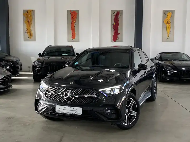 9G-Tronic, Teilleder, Dekra-Siegel, Digitaler Tacho, LED Matrix Licht, Rückfahrwarner, Scheckheft, Verkehrszeichenerkennung, Euro6d_Temp, Herstellergarantie, schwarz, Landesversion Deutschland, 4-türig, grüne Umweltplakette (4), 1. Hand, 3. Bremsleuchte, Außentemperaturanzeige, Distronic, Kollisionswarnung, Rückleuchten LED, Scheinwerferreinigung, Servotronic, Spiegel automatisch abblendbar, Farbmonitor für Navigationssystem, abgedunkelte Scheiben im Fond, Außenspiegel beheizbar, Außenspiegel elektr. anklappbar, Follow me home Funktion, Keyless Start, Keyless-Go, Lenksäule einstellbar, Nichtraucherfahrzeug, Sondermodell, Telefonvorbereitung, Hagelschaden, Außenspiegel abblendbar, Einparkhilfe, iPad/iPod-Anschluss, Rußpartikelfilter, Allrad, Live Informationssystem, 4 Einstiegstüren, 5 gurtges. Sitzplätze, Abgedunkelte Scheiben (Privacy Verglasung), Anhängerrangierassistent, Metallic, Unfallfahrzeug, Super, MB GLC 300 4MATIC Coupe AMG Line Advanced Plus