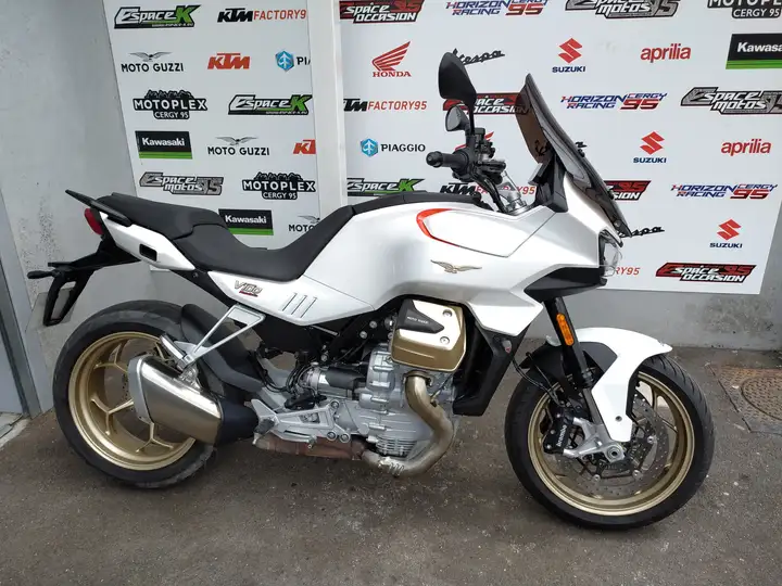 Moto Guzzi v100 mandello, blanche, 01/2023, 3500 km. Equipe d'une bulle haute scdem. Vhicule de dmonstration. Dossier complet : manuel d'utilisateur, double des cls et factures seront fournis la vente. Une rvision annuelle est prvue pour la vente. Garantie 3 mois, extension possible. Reprise, financement et assurance possible, essai sur rdv. Visible au magasin horizon motos, 11 rue d'pluches, 95310 saint ouen l'aumne, demander Philippe ou Kevin au 01.30.30.38.24. Comparable gsx-s 1000 gt, ninja 1000 sx, r1250rs, nt 1100, tracer 9
