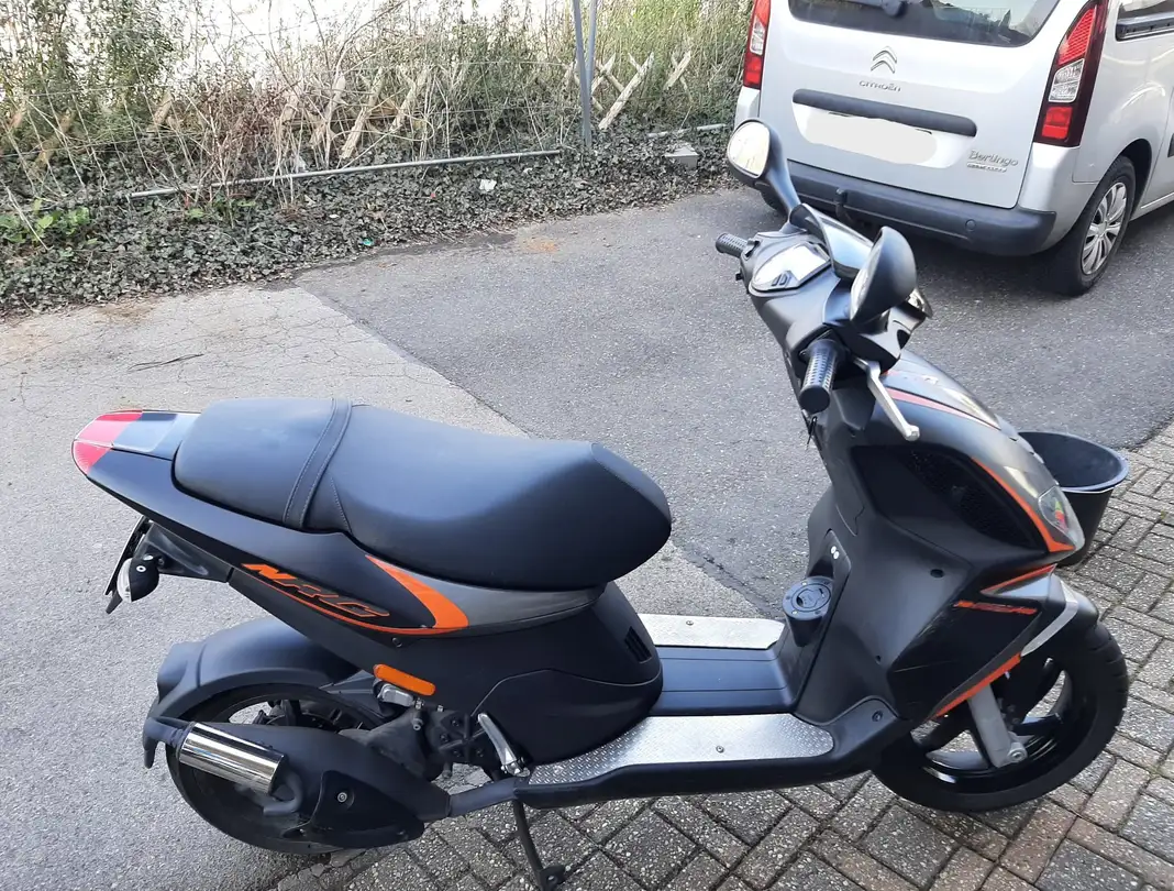 Rechtlicher Hinweis: Der Roller ist nicht unfallfrei. Er hatte einen kleinen Rutscher/Unfall bei geringer Geschwindigkeit. Dabei sind Kratzer an der vorderen seitlichen Verkleidung (Farbe: Nero Lucido 80/B) entstanden. Der Rahmen und die Gabel sind nach meiner Einschätzung nicht beinträchtigt, der Roller fährt geradeaus.