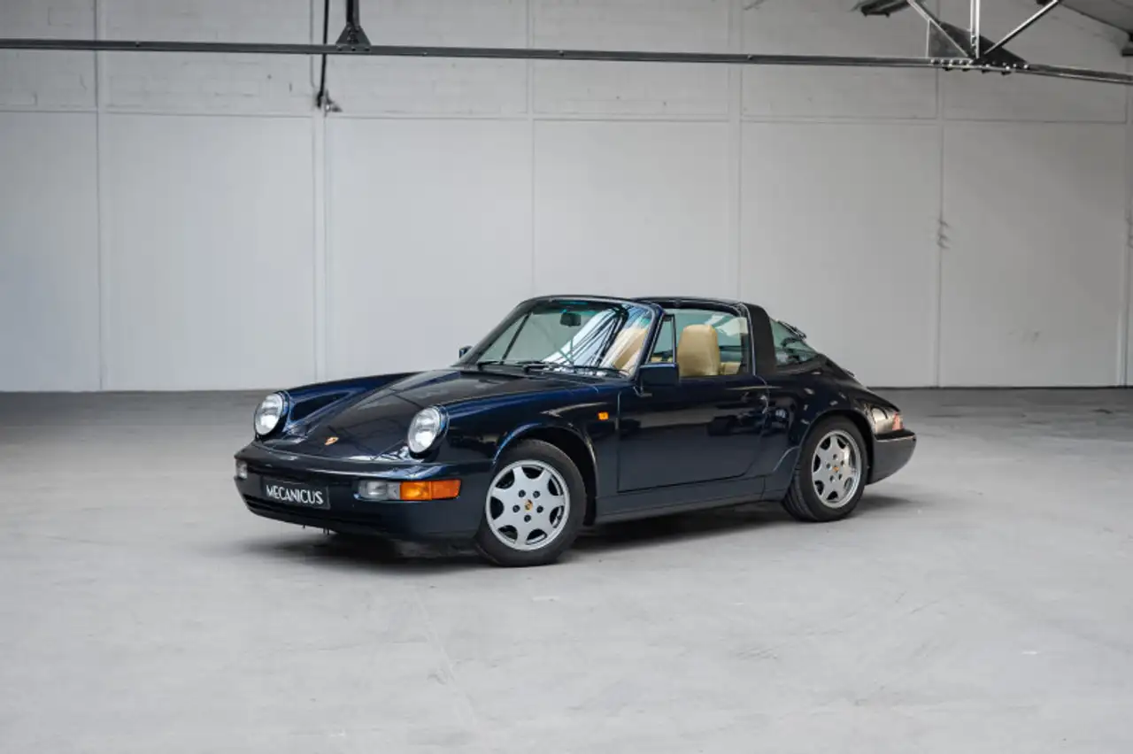 La Porsche 911 type 964 Targa que nous vous présentons est un exemplaire d?origine suisse, livré neuf le 1er janvier 1992 par le Centre Porsche de Zurich.brbrLa peinture de cette auto, Midnight Blue Metallic, est une teinte profonde qui s?associe magnifiquement à un intérieur en cuir Fauve. Cette combinaison rare et intemporelle souligne avec une élégance particulière les lignes emblématiques de la 964.brbrCôté mécanique, cet exemplaire bénéficie d'un atout majeur : son moteur a été entièrement refait dans les règles de l?art. Cette intervention lourde, attestée par des factures, garantit aujourd?hui une utilisation sereine et permet de retrouver toute la noblesse du Flat-6 3.6 L de 250 ch, couplé à la sécurité de la transmission intégrale.brbrElle affiche actuellement 171 500 kilomètres au compteur, parcourus avec brio grâce à un suivi d'une régularité exceptionnelle. Son carnet d?entretien ainsi que son dossier de factures ne laissent aucun doute sur son historique : l'auto a été entretenue exclusivement au Centre Porsche de Zurich de 1992 à 2010 (148 416 km), avant de rejoindre la France, où elle a continué d'être soignée par Porsche La Défense et des spécialistes reconnus.brbrEquipement optionnel : br4 roues motricesbrClimatisationbrRadio numérique DABbrSièges sportbrToit ouvrant / Toit panoramiquebrbrListe des entretiens : br06/1992 - Entretien - 3948km - Porsche Zurichbr12/1993 - Entretien - 19568km - Porsche Zurichbr04/1995 - Entretien - 30704km - Porsche Zurichbr04/1996 - Entretien - 35957km - Porsche Zurichbr05/1997 - Entretien - 46193km - Porsche Zurichbr07/1998 - Entretien - 61385km - Porsche Zurichbr04/1999 - Entretien - 72199km - Porsche Zurichbr08/2000 - Entretien - 82697km - Porsche Zurichbr09/2001 - Entretien - 91067km - Porsche Zurichbr06/2003 - Entretien - 104541km - Porsche Zurichbr10/2004 - Entretien - 114297km - Porsche Zurichbr05/2006 - Entretien - 121456km - Porsche Zurichbr06/2008 - Entretien - 137422km - Porsche Zurichbr07/2010 - Entretien - 148416km - Porsche Zurichbr05/2014 - Entretien - 155058km - Porsche La Défensebr11/2019 - Entretien - 158180km - APC Sport et Prestige (spécialiste Porsche)br01/2021 - Entretien - 160053km - APC Sport et Prestige (spécialiste Porsche)br06/2022 - Entretien - 164180km - APC Sport et Prestige (spécialiste Porsche)br10/2023 - Entretien - 166777km - APC Sport et Prestige (spécialiste Porsche)brbrLe véhiucle est couvert par un contrat Mecanicus Essentiel 12 mois avec plafond de 5 000¤brbrL'auto est visible à Paris ou sur le site de Mecanicus pour plus de photos. Nos prix s'entendent TVA et malus inclus, le coût de la carte grise reste à la charge de l'acheteur.brReprise et financement possibles.brbrL'équipe MECANICUS