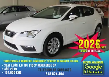 Seat León 1.6 TDI 115cv Reference 5p. 154.000 KM Certificados y firmados en contrato. Año 2019 >> 202€ al mes (1.000€ de Entrada)