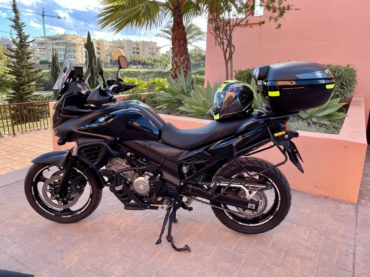 Suzuki V-Strom DL650A en color negro. Moto versátil y robusta, muy juguetona. - Limitable para A2. - Baúl de gran tamaño. - Maletas lateral nuevas, con un solo uso. - Protecciones delanteras. - Caballete central. - Cúpula regulable Givi. - Protector de puños. - Sillín con gel de 1 cm incorporado y tapizado en piel con logo original. - Ruedas nuevas, ambas al 90%. - Ni una caída. - Duerme siempre en garaje. - ITV hasta mayo 2027. Moto con 65 mil km, muy mimada y sus revisiones hechas siempre antes de tiempo. Vendo por cambio de segmento. Acepto cambio por Kawasaki Vulcan 650 aportando diferencia € si la hubiera. #Trail #Suzuki #650 #Versys #Honda #Yamaha