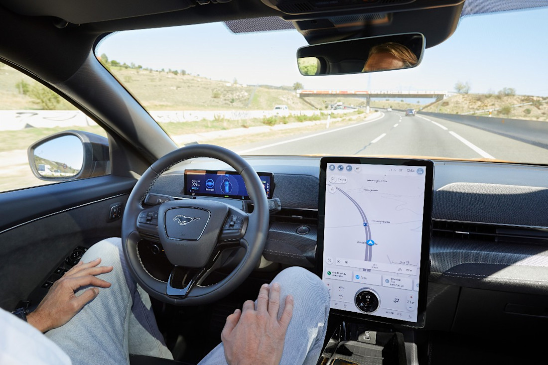 Este sistema que aún se engloba dentro del Nivel 2+ de conducción autónoma pero que, sin ninguna duda, supone un paso gigantesco dentro de las fronteras europeas está disponible en más de 28.000 km de BlueZones (como llama Ford a las zonas donde se puede activar -autopistas y autovías-) en toda España y en más de 60.000 km si sumamos también los tramos aptos en Alemania y Reino Unido. Junto a estos dos países, España se sitúa pionera en aceptar algo así dentro del territorio europeo y Ford en conseguir homologarlo.