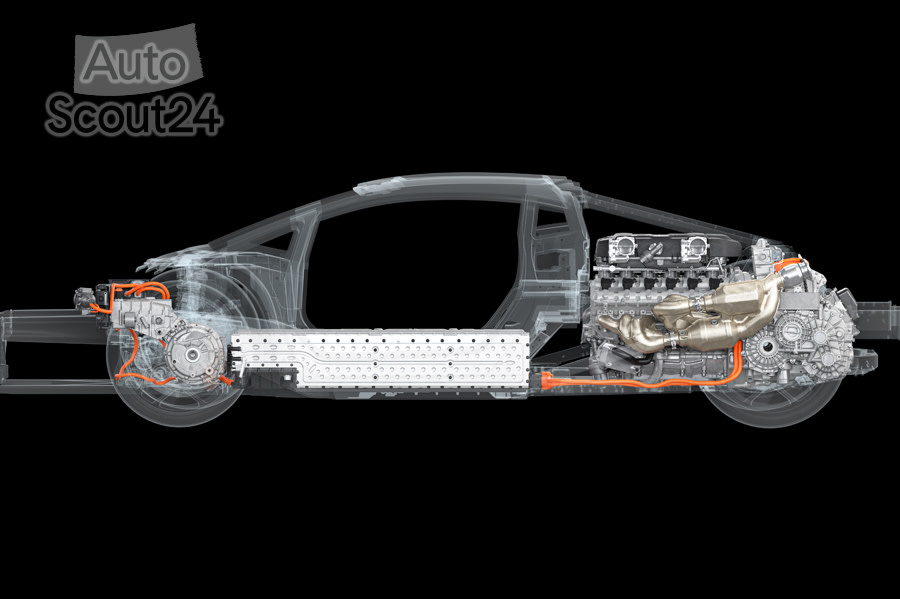 Respecto a la terna de motores eléctricos cada uno de ellos desarrolla una potencia de 110 kW (150 CV) y un par máximo de 350 Nm en el caso del delantero y 150 Nm en el del trasero. Cada uno pesa 18,5 kilos y de manera conjunta permiten que este Lamborghini LB744, código como se le conoce de momento a este deportivo phev italiano, entregará nada menos que 1.001 CV siendo el primero en romper la barrera de los cuatro dígitos.