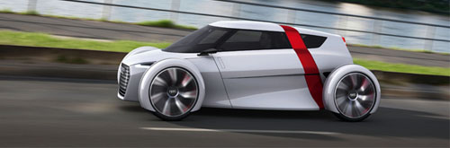 Se trata de un utilitario eléctrico de dos plazas elaborado con materiales muy ligeros y con algunos elementos muy novedosos, sobre todo en lo referente a las puertas, a las ruedas y al acceso al habitáculo. Se ha desarrollado con carrocería Sportback (con aspecto coupé) y Spyder (sin techo) y, según sus creadores, está a medio camino entre un coche de carreras y un urbano práctico y divertido… A simple vista, y aunque parezca futurista, la referencia que hace Audi a los coches de carreras parece corresponderse más con los clásicos “Silver Arrows” de los años 30 que con cualquier superdeportivo actual. Las ruedas independientes de la carrocería, el piloto en una posición central como único responsable del manejo del vehículo y una carrocería extremadamente corta son señas de identidad de la competición en esta década del siglo pasado.