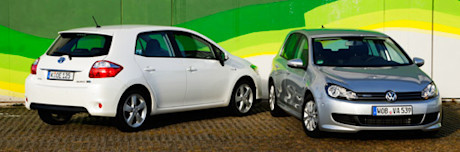 Pese a sus diferentes tecnologías de propulsión, tanto el VW Golf 1.6 TDI Bluemotion como Toyota Auris Hybrid intentan atraer nuestra atención con el mismo consumo de ensueño: 3,8 litros.