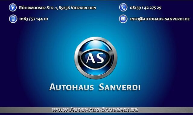 AUTOHAUS SANVERDI - Geprüfte Gebrauchtfahrzeuge aller Klassen - Dafür stehen wir mit unserem Namen seit über 25 Jahren! Unsere Dienstleistungen: - Geprüfte Gebrauchtwagen mit "Vorab-Check" - Enge Zusammenarbeit mit dem "TÜV-Süd" - Nutzung des Standards "Faire Fahrzeugbewertung" - Fahrzeuge mit Service- und Instandhaltungshistorie - KM-Stand Garantie - hauseigene Werkstatt mit Reparatur- und Serviceleistungen für alle PKW-Marken - Fahrzeugfinanzierung - PKW Ankauf - Fahrzeuggarantie möglich - Besichtigung im Showroom und flexible Probefahrtzeiten möglich - Kompetenz über 25 Jahre in zweiter Generation