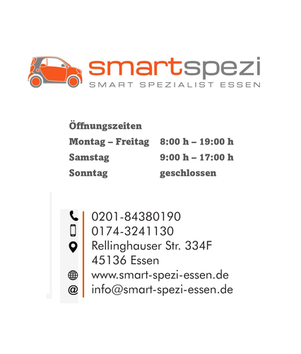 Welcome to Smartspezi Essen ! We speak english! Bienvenido a Smartspezi Essen ! Hablamos español ! Smart Werkstatt Qualität ist, wenn der Kunde zurückkommt und nicht das Produkt! In unserer Smart-Fachwerkstatt bieten wir Ihnen im Großraum Essen den erfahrenen und kompetenten Rundum-Service für Ihren Smart. Alle Wartungs- und Reparatur-Dienstleistungen für Ihr Fahrzeug erhalten Sie von uns aus einer Hand.